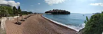 Aman Sveti Stefan (formerly Sveti Stefan Hotel) is a hotel resort in the town of Sveti Stefan, on the Adriatic coast of Montenegro.[1] The resort includes the islet of Sveti Stefan and part of the mainland, where the Villa Miločer (pronounced [vîla mîlɔ̝tʃe̞r]) part of the resort is located. The hotel is a 5-star franchise hotel of the international group of Aman Resorts, completed in 2009 and operating under a 30-year lease. The hotel has been closed since early 2020 due to COVID-19 pandemic, and remains closed with no announced reopening date. In communication to guests and media, Aman has indicated security concerns and conflicts with government entities as reasons for continued closure.[18][19]