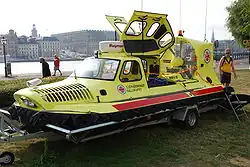 A covered hovercraft used by the Sea Rescue Society