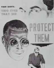 Laboratory safety advisory about the importance of protective goggles, 1955