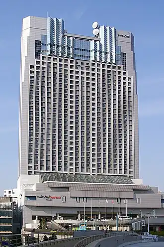 Swissôtel Nankai Osaka (スイスホテル南海大阪) is a hotel situated directly above Namba Station on the Nankai Railway lines in Chūō-ku, Osaka, Japan. The hotel is owned by Nankai Electric Railway Co., Ltd., and managed by the Switzerland-based hotel chain Swissôtel Hotels & Resorts.