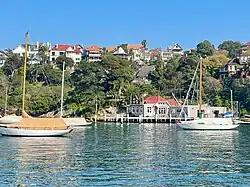 The original clubhouse was located at Bennelong Point, now the location of the Sydney Opera House.[6] The club acquired the current clubhouse in August 1962[7] and this is situated at Cremorne Point.[8] Upon European settlement in 1788 the area became known as Careening Point and HMS Sirius was refurbished in the bay in 1789.[9] The clubhouse building features in the famous painting,The Harbour from Mosman, 1926 by Arthur Streeton.[10]
