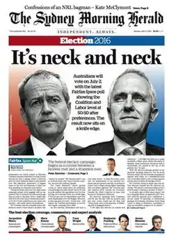 - ^ Fergus Hunter, Federal election 2016: Daily newspapers unanimously back Turnbull Coalition Archived 31 July 2021 at the Wayback Machine, Sydney Morning Herald (July 1, 2016).