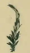 A sprig of Genista anglica with leaves spun together and discoloured by larva