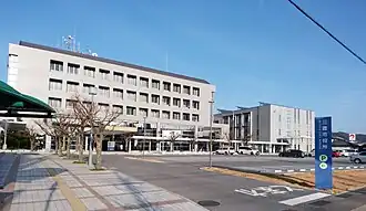 Takase has one major medical institution, the city-funded Mitoyo Nishikawa Hospital. It is also the location of Mitoyo City Hall and the Mitoyo Police Station.