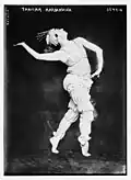 The choreographer George Balanchine said he had fond memories of watching her when he was a student at the Imperial Ballet School. Shortly before 1910, she was regularly invited to dance in Paris with the Ballets Russes of Sergei Diaghilev. During her years with the company, she created many of her most famous roles in the ballets of Mikhail Fokine, including Petrushka and Le Spectre de la Rose. She danced the latter with Harold Turner.[22] She was perhaps most famous for creating the title role in Fokine's The Firebird with Fokine, her occasional partner. (This role was originally offered to Anna Pavlova, who could not come to terms with Stravinsky's strikingly new score.)