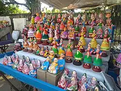 Thanjavur (Tamil: [t̪aɲdʑaːʋuːɾ]), also known as Thanjai, previously known as Tanjore,[2] is a city in the Indian state of Tamil Nadu. It is the 12th biggest city in Tamil Nadu. Thanjavur is an important center of southern Indian religion, art, and architecture. Most of the Great Living Chola Temples, which are UNESCO World Heritage Monuments, are located in and around Thanjavur. The foremost among these, the Peruvudaiyar Temple, built by the Chola emperor Rajaraja I, is located in the centre of the city. This temple has one of the largest bull statues (called Nandi[3]) in India carved out of a single granite rock. Thanjavur is also home to Tanjore painting, a painting style unique to the region. Thanjavur is the headquarters of the Thanjavur District. The city is an important agricultural centre located in the Kaveri Delta and is known as the Rice bowl of Tamil Nadu. Thanjavur is administered by a municipal corporation covering an area of 36.31 km2 (14.02 sq mi) and had a population of 222,943.[4] Roadways are the major means of transportation, while the city also has rail connectivity. The nearest airport is Tiruchirapalli International Airport, located 59.6 km (37.0 mi) away from the city. The nearest seaport is Karaikal, which is 94 km (58 mi) away from Thanjavur. The city first rose to prominence during the reign of the Cholas when it served as the capital of the empire. After the fall of the Cholas, the city was ruled by various dynasties such as the Mutharaiyar dynasty, the Pandyas, the Vijayanagar Empire, the Madurai Nayaks, the Thanjavur Nayaks, the Thanjavur Marathas and the British Empire. It has been a part of independent India since 1947.