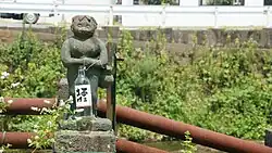 Tanushimaru was famous for its hot springs, the best being Mino Onsen, as well as its plant farming, unagi, and kappa. Legend has it that the nearby river is the origin of all Japanese kappa, and many monuments to the river monster can be seen around the town. Many of the local inhabitants offer cucumbers and sake to the kappa shrines.