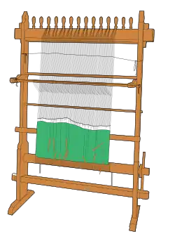 Medieval European loom, of a type still in use for smaller pieces. The different colours are not shown.
