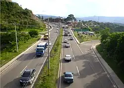 Tegucigalpa's infrastructure has not kept up with its population growth.[35] Deficient urban planning,[36] densely condensed urbanization, and poverty[37] are ongoing problems.[38] Road infrastructure is unable to efficiently handle over 400,000 vehicles, resulting in heavy congestions.[39] Both national and local governments have taken steps to improve and expand infrastructure as well as to reduce poverty in the city.[40][41]