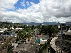Tegucigalpa is located in the southern-central highland region known as the department of Francisco Morazán of which it is also the departmental capital.[20] It is situated in a valley, surrounded by mountains. Tegucigalpa and Comayagua, being sister cities, are physically separated by the Choluteca River.[21] The Central District is the largest of the 28 municipalities in the Francisco Morazán department.[22]