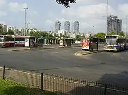 The central bus terminal (מסוף רכבת מרכז), Arlozorov Terminal or Tel Aviv 2000 Terminal (מסוף 2000), is a major bus station located next to the Tel Aviv Central railway station, near the border of Tel Aviv and Ramat Gan, next to the Ayalon Highway and the junction of several traffic arteries: Jabotinsky Road that leads to Ramat Gan, Bnei Brak and Petah Tikva, Begin Road that goes to south Tel Aviv, Namir Road to north Tel Aviv and further to Highway 2 and Arlozorov street westward to the sea. Arlozorov/2000 Terminal should not be confused however with the Tel Aviv central bus station, located in southern Tel Aviv – nearby the HaHagana railway station.