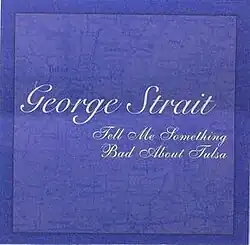 "Tell Me Something Bad About Tulsa" is a song written by Red Lane. It was first recorded by American country music artist Merle Haggard on his 1986 album, Out Among the Stars.[1] Haggard's son, Noel Haggard, covered the song on his 1997 debut album, One Lifetime, and released it as his second single. It peaked at number 75 on the Billboard Hot Country Singles & Tracks chart in August 1997.[2] Noel Haggard's version was released through Atlantic Records and was produced by Barry Beckett.[3]