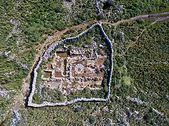 The Temple of Poseidon at Tainaron is on the extreme point of the Mani Peninsula, the middle finger of the Peloponnese peninsula. It was dedicated to Poseidon Asphaleios, meaning "Poseidon of Safety".[1]
