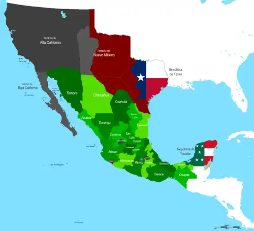 • The following maps do not show the separation of Zacatecas (in 1835) and Tabasco (in 1841–1842), which never became independent republics and were never proclaimed as such.