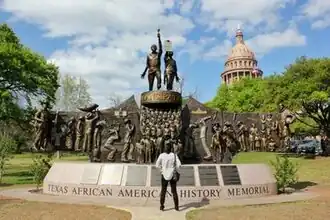 The Texas African American History Memorial is an outdoor monument commemorating the impact of African Americans in Texas, installed on the Texas State Capitol grounds in Austin, Texas, United States. The memorial was sculpted by Ed Dwight and erected by the Texas African American History Memorial Foundation in 2016. It describes African American history from the 1500s to present, and includes depictions of Hendrick Arnold and Barbara Jordan, as well as Juneteenth (June 19, 1865), when African Americans were emancipated.[1]