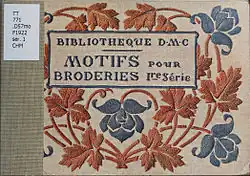 She did however include a section on machine sewing. This work was aimed at the fashion for needlework and it competed with the Dictionary of Needlework and Weldon's Practical Needlework which was published in monthly parts from 1886. Dillmont's book was tied in with Dollfus-Mieg et Cie, a French thread company, and these products were recommended to her readers.[3] In 1884 she had started working with the Alsatian-French textile firm (DMC) at Mulhouse after signing an agreement on 26 October 1884 with Jean Dollfus.[2]