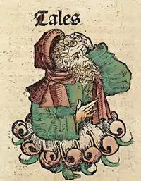 ![]() Posthumous portrait of Thales by Wilhelm Meyer, based on a bust from the 4th century | |