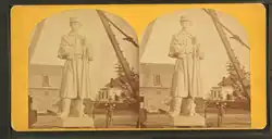 Batterson allowed O. Langworthy & Company to photograph the colossal statue at the Rhode Island Granite Works prior to its departure by ship for Philadelphia, Pennsylvania. This may have been intended to generate publicity before its formal debut at the Centennial Exposition in May 1876.