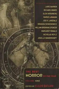 The Best Horror of the Year is a series of horror fiction anthologies edited by Ellen Datlow.[1] The series is published by Night Shade Books. The format of the series is a collection of horror stories that vary in topic, contributed by multiple authors. A new volume has been released yearly since 2009.