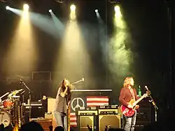 This is a discography of the Black Crowes, an American hard rock/jam band formed in 1984 by Chris and Rich Robinson.[1] Their first studio album, Shake Your Money Maker, was released in 1990. Helped by the singles "Twice as Hard", "Jealous Again", "Hard to Handle", "She Talks to Angels", and "Seeing Things", the album peaked at number four on the Billboard 200 and went five times platinum in the United States.[2][3] "Hard to Handle" and "She Talks to Angels" both reached number one on the Hot Mainstream Rock Tracks chart.[4]
