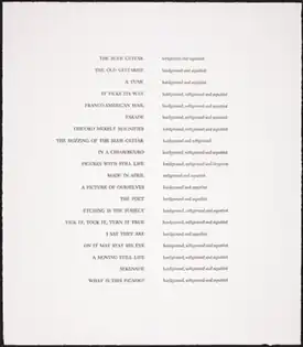 14. ^ a b "David Hockney. Cancellation proofs for The Blue Guitar. 1977 | MoMA". The Museum of Modern Art. Archived from the original on 26 Feb 2023.