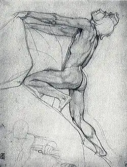 Fyodor Bruni. Young Man Climbing a Rock (drawing for painting The Bronze Serpent)