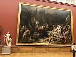 After that, the painting was in the Russian School Hall of the Hermitage.[2] In 1897, it was transferred to the then emerging Russian Museum of Emperor Alexander III (now the State Russian Museum), where it is still located.[31] After the opening of the museum in 1898, it was exhibited in the Mikhailovsky Palace, in the same room with another painting by Bruni, "The Death of Camilla, Sister of Horace". According to the recollections of Alexander Benois, in the same room were "The Last Day of Pompeii" and "The Siege of Pskov" by Bryullov, "Christian Martyrs in the Colosseum" by Flavitsky, "Christ's Appearance to Mary Magdalene after the Resurrection" by Ivanov, "Last Supper" by Ge, and two or three other paintings by Aivazovsky.[32][33] Referring to the fact that both in the Hermitage and after its transfer to the Russian Museum, "Brazen Serpent" was placed next to "The Last Day of Pompeii", Alexander Benois wrote: "Both colossi of Russian painting found a place on the same wall <...>, as if these giants were actually paired works".[10]