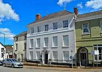 The architectural historian John Newman[2] calls this the "one substantial eighteenth century house" in St James Street, though it is surrounded by later attractive façades. A dispensary was established here in 1857. This became the Monmouth Hospital and Dispensary, with nine beds, in 1868, and closed in 1903. The dispensary is one of 24 buildings on the Monmouth Heritage Trail, marked by a ceramic blue plaque on the wall.