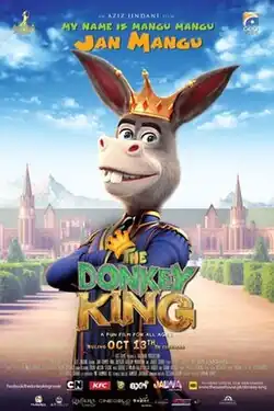 The Donkey King (Urdu: danki king) is a 2018 Pakistani animated comedy film, directed by Aziz Jindani. The film features the voices of Jan Rambo, Ismail Tara, Hina Dilpazeer, Ghulam Mohiuddin, and Jawed Sheikh. It was released in Pakistan on 13 October 2018 by Geo Films and Talisman Animation Studios.[5] After its national success, it became the first Pakistani film to be dubbed into ten languages for multiple international theatrical releases, distributed worldwide by Annalisa Zanierato, for Pantera Film.[2]