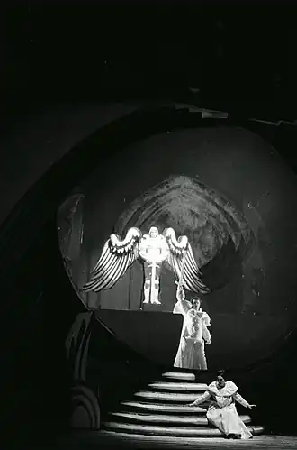 The Fiery Angel (Russian: Огненный ангел, romanizedOgnenny angel), Op. 37, is an opera by Russian composer Sergei Prokofiev. The opera was composed between 1919 and 1927.[1] It was premiered posthumously in 1955 in Venice, in Italian. The work was not presented to Russian audiences until the 1990s, most notably by the Mariinsky Theatre, after the dissolution of the Soviet Union.[2][3]