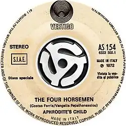 "The Four Horsemen" is a song from the concept album 666 by the psychedelic rock band Aphrodite's Child, considered the album's most renowned track.[1] It has received regular airplay on AOR stations since its release in 1972. Like the album, the song is based on the Book of Revelation.