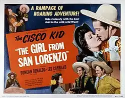 The Girl from San Lorenzo is a 1950 American Western film directed by Derwin Abrahams and written by Ford Beebe. The film stars Duncan Renaldo, Leo Carrillo, Jane Adams, William F. Leicester, Byron Foulger and Don C. Harvey. The film was released on February 24, 1950, by United Artists.[1][2]