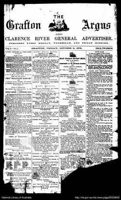 - ^ a b "The Grafton Argus and Clarence River General Advertiser". Trove Digitised Newspapers. National Library of Australia. Retrieved 8 March 2018.