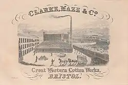 A lot of the finance for new investment in Bristol in the nineteenth century was derived from profits from the Atlantic slave trade, as well as compensation paid to owners of slaves following the Slavery Abolition Act 1833.[2] Robert Bright and George Gibbs, West India merchants, Gibbs Bright & Co. were active in the slave trade and both were original shareholders in the Great Western Cotton Company[5] alongside the Manchester cotton manufacturer, Joseph Bell Clarke. Other Bristol merchants, bankers and businessmen who were shareholders of the Great Western Cotton Factory included William Edward Acraman, Alfred John Acraman, Peter Maze, Richard Ricketts, Frederick Ricketts, Henry Bush Thomas Kington the younger, Charles Pinney, Robert Edward Case, Henry Bush, Philip William Skynner Miles, George Henry Ames, Peter Freeland Aiken, James George, Daniel Cave and Joseph Cookson.[2]
