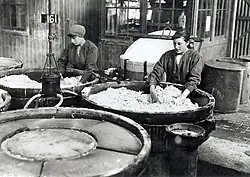 The Gretna Girls were a small part of the one million women who worked in munitions during World War One.[2] The makeup of The Gretna Girls reflected the countrywide trends for munitions workers: the majority were working class young women.[3] However, as Chris Brader points out, unusually for Government factories, munition workers at Gretna came from an even younger demographic—a large proportion was under eighteen years of age.[4] There were no creche facilities at Gretna, unlike other munition factories.[3] The highest number of women employed at the factory was 11,576 in 1917, but this figure dropped to 6,285 by October 1918.[4]