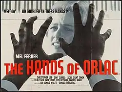 The Hands of Orlac (also known as Les Mains D'orlac) is a 1960 horror film directed by Edmond T. Gréville, starring Mel Ferrer, Christopher Lee and Dany Carrel.[2] It was written by Gréville, John V. Baines with additional dialogue by Donald Taylor.[1] It was based on the 1920 novel Les Mains d'Orlac by Maurice Renard, which had previously adapted into silent film and as a Hollywood film production.