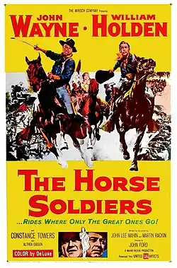 The Horse Soldiers is a 1959 American adventure war film set during the American Civil War directed by John Ford and starring John Wayne, William Holden, and Constance Towers. The screenplay by John Lee Mahin and Martin Rackin was loosely based on the Harold Sinclair (1907-1966) 1956 novel of historical fiction of the same name, a fictionalized version of the famous Grierson's Raid by federal cavalry in April–May 1863 riding southward through Mississippi and around the Mississippi River fortress of Vicksburg during the Vicksburg campaign to split the southern Confederacy by Union Army General Ulysses S. Grant.