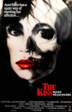 The Kiss is a 1988 dark fantasy horror drama film directed by Pen Densham and starring Joanna Pacula and Meredith Salenger. The plot follows two young women who find themselves haunted by an ancient parasitic curse that was passed on to one of them by a kiss.