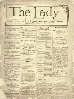 1. ^ a b Jamieson, Alastair (2 April 2009). "The Lady, the dusty women's weekly from Victorian times, given a makeover". The Telegraph. Retrieved 11 June 2017.