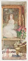 The Lady in White would later make an appearance as a painting within a painting in the background of Bracquemond's watercolor Interior of a Salon.[16]