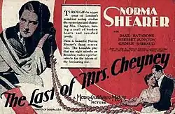The Last of Mrs. Cheyney is a 1929 American Pre-Code comedy-drama film directed by Sidney Franklin. The screenplay by Hanns Kräly is based on the 1925 play of the same name by Frederick Lonsdale which ran on Broadway for 385 performances.[1] The film was remade twice, with the same title in 1937 and as The Law and the Lady in 1951.