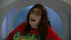 During the scene in the bathroom with Amanda, Betty's costumed wings are reversed. The reason for that was the camera is looking at Betty through the mirror.