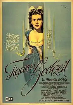 The Marriage of Figaro (German: Figaros Hochzeit) is a 1949 East German musical film directed by Georg Wildhagen and starring Angelika Hauff, Willi Domgraf-Fassbaender and Sabine Peters.[1] It was based on the opera The Marriage of Figaro by Wolfgang Amadeus Mozart and Lorenzo Da Ponte, which was itself based on the play The Marriage of Figaro by Pierre Beaumarchais. The film was made by DEFA, the state production company of East Germany, in their Babelsberg Studio and the nearby Babelsberg Park. It sold 5,479,427 tickets.[2]