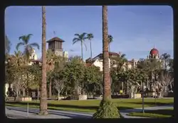The property began as an adobe boarding house called Glenwood Cottage, built by engineer/surveyor Christopher Columbus Miller and on November 22, 1876, the Millers took their first paying guest. In February 1880, Miller's son Frank Augustus Miller purchased the hotel and land from his father. It became a full-service hotel in the early 1900s due to California's economic citrus boom and warm weather, attracting wealthy travelers and investors from the East Coast and Europe.[4] In 1902, Frank changed the name to the "Glenwood Mission Inn" and started building, in a variety of styles, until he died in 1935.