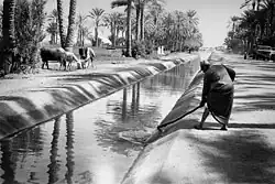 A concrete canal developed by the research center as a demonstration project northwest of Cairo in the 1970s.