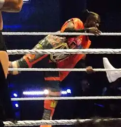 ![]() The New Day's Kofi Kingston (left) and Xavier Woods at a WWE Live tour event in 2016 | |