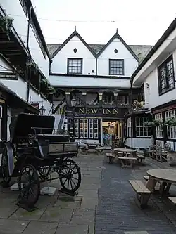 The New Inn, 16 Northgate Street, Gloucester, England, is a timber framed building used as a public house, hotel and restaurant. It is the most complete surviving example of a medieval courtyard inn with galleries in Britain, and is a Grade I listed building.[1] The announcement of Lady Jane Grey's succession to the English throne was made from the Inn gallery in 1553.[2][3]