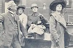 This film was the third release in the "Violet Grey, Detective" series from Thanhouser. Both Love and Law and The Vote That Counted were popular precursors and The Norwood Necklace was no different. The director of this film is unknown as well as most of the cast, save for Julia M. Taylor in the role of Violet Grey.[1] The film is presumed lost because the film is not known to be held in any archive or by any collector.[2] Possible identification of other cast members may be possible due to a surviving film still which shows the woman suspect, the superior officer and Julia M. Taylor as Violet Grey.[3] The final film The Court's Decree would be released on July 11, 1911.[2]