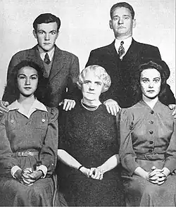 The O'Neills in January 1941 Seated from left: Janice Gilbert (Janice), Kate McComb (Mother O'Neill), Claire Neisen (Peggy). Standing from left: Jimmy Donnelly (Eddie) and James Tansey (Danny)