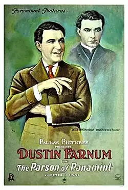 The Parson of Panamint is a lost[1] 1916 American Western silent film directed by William Desmond Taylor and written by Julia Crawford Ivers and Peter B. Kyne. The film stars Dustin Farnum, Winifred Kingston, Pomeroy Cannon, Howard Davies, Colin Chase and Ogden Crane. The film was released on September 3, 1916, by Paramount Pictures.[2][3]